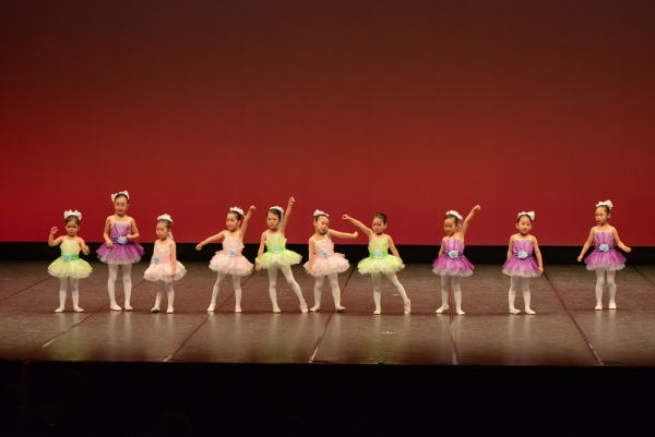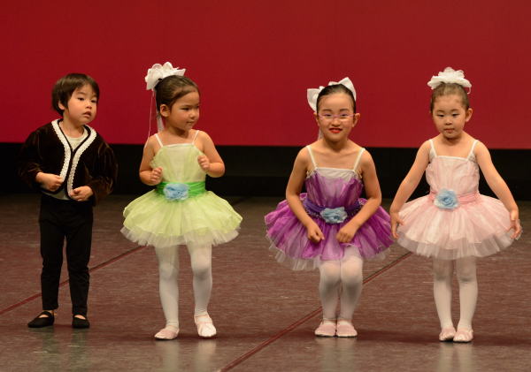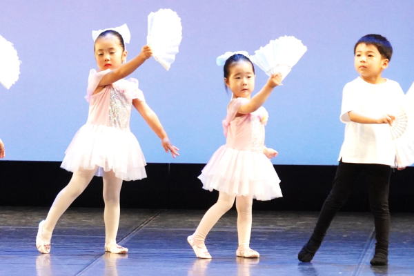 身近にお客様から拍手やお菓子、お褒めの言葉を頂き、 バレエの楽しさ・充実感を経験します。さらに緊張する事にも慣れてから、毎年7月頃にちえりあホールにて発表会に出演します。