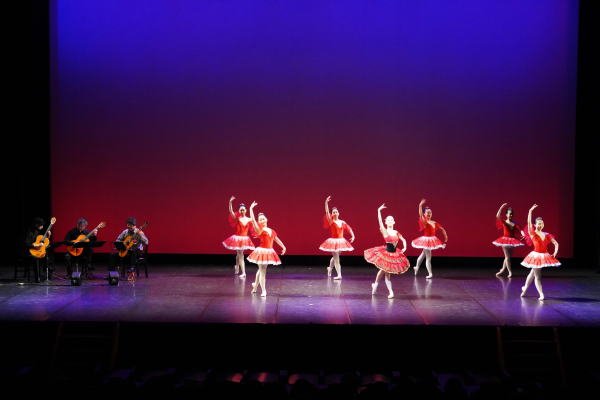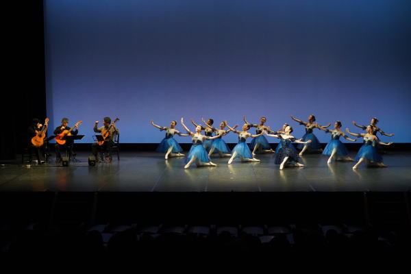 ギター三重奏による、モーツァルト作曲『アイネ・クライネ・ナハトムジーク』、チャイコフスキー作曲『弦楽セレナーデ』を小学1年生から大学1年生までが踊りました。