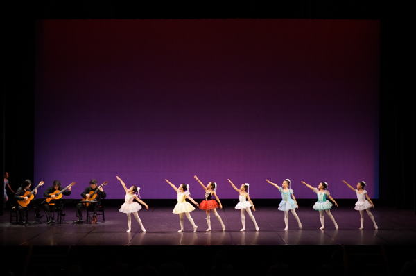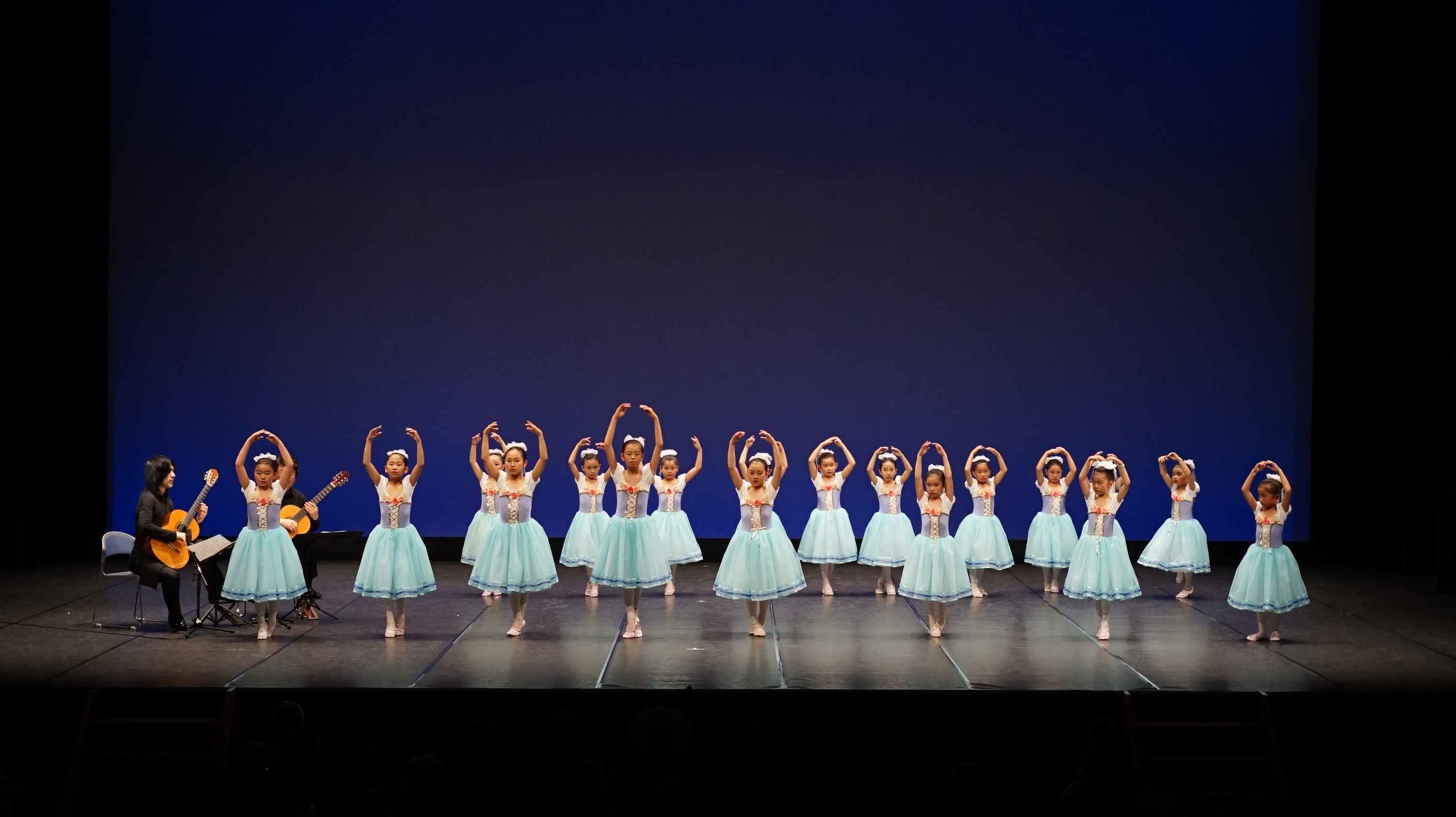 3才から中学1年生までの子供達が緊張しつつも、頑張りました。昼の部ではギターの生演奏にても踊り、大変良い経験をしました。夕の部ではほとんどが初舞台か2回目でとてもがんばりました。生演奏で踊るバレエ教室はほとんど少ないです。生演奏ならではの、本番だけのテンポ、微妙な違いがあるため、一人一人が良く耳で聴き、踊ることが求められます。それを子供達は成し遂げました。
