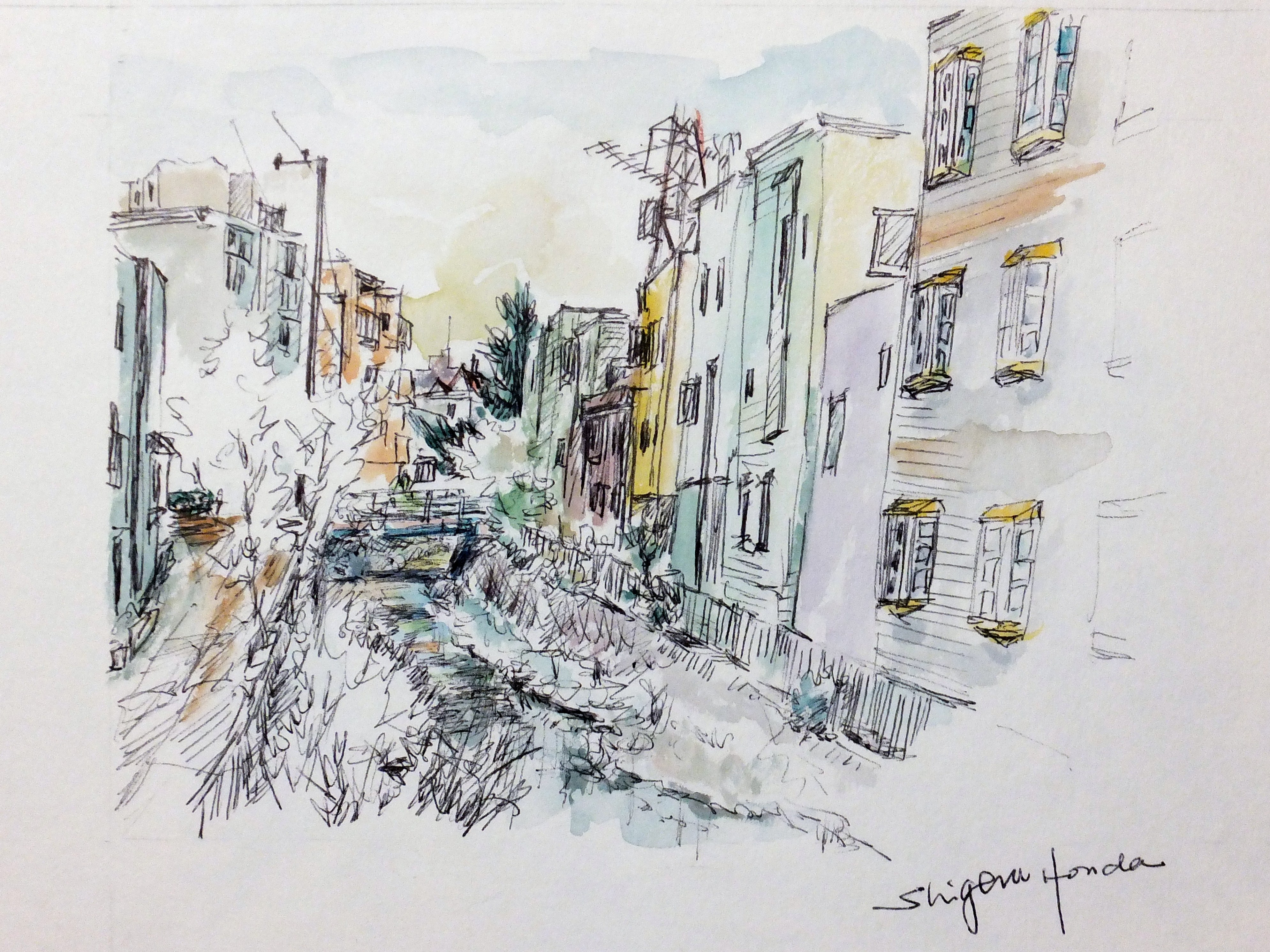 住み慣れた街をモチーフにスケッチし、またそれをもとに