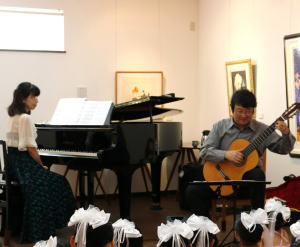 2015年9月5日(土)はサマーコンサートをリーフレットミューズで開催しました。ゲストにギターの佐藤洋一先生とピアニストの佐藤理恵さんに来て頂きました。ほとんどの子供たちは生演奏は初めてであり、じーーっと見て聴いていました。ショパンから子供向けの曲まで楽しめました。